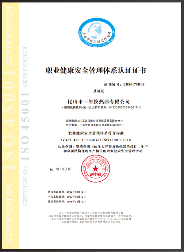 A2壓力容器制造許可證,D1/D2壓力容器設計許可證;GC2管道安裝許可證;ASME U/NB鋼?。籌SO9001、ISO45001、ISO14001體系認證證書等。